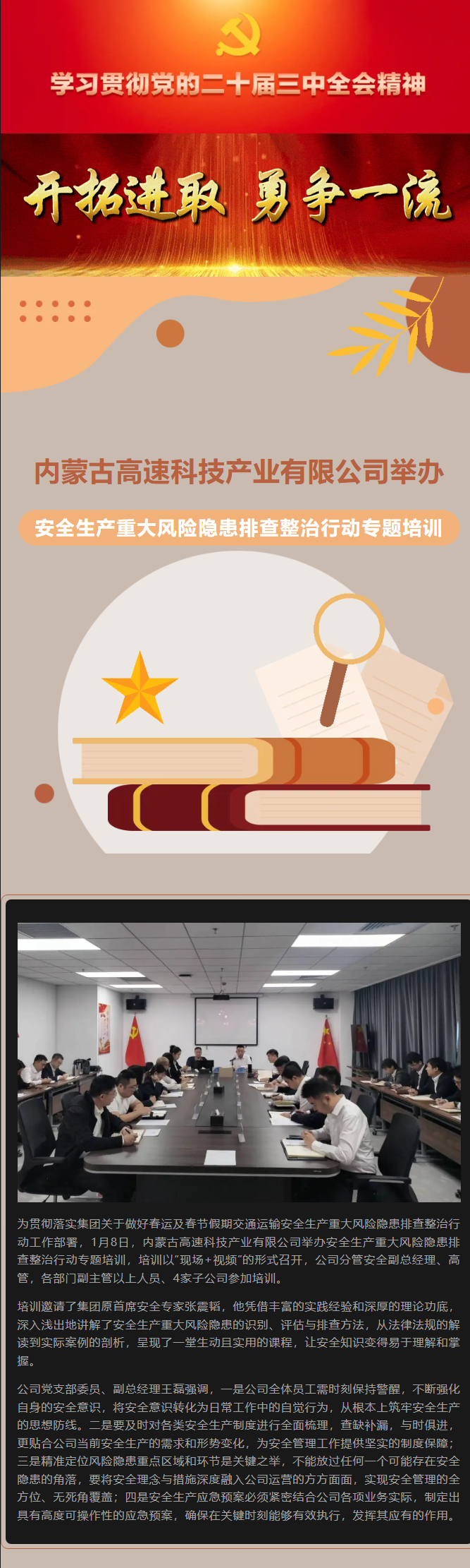 內蒙古高速科技產業有限公司舉辦安全生產重大風險隱患排查整治行動專題培訓