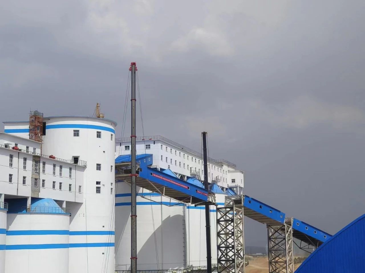 2024年5月20日下午 15 點 26 分由山西開源益通礦業科技工程有限公司承建的1號轉載點到1號產品倉帶式輸送機鋼結構棧橋順利完成吊裝工作。