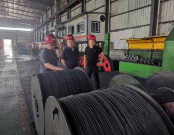 返回途中,孟國君一行還前往天津市新天鋼中興盛達有限公司與天津大強鋼鐵有限公司進行調研,通過技術人員的專業講解,深入了解了鋼絞線產品制造工藝、生產規模、運行模式等情況,對新的技術改良工藝、質量安全檢驗檢測等方面有了更加全面的認識。
