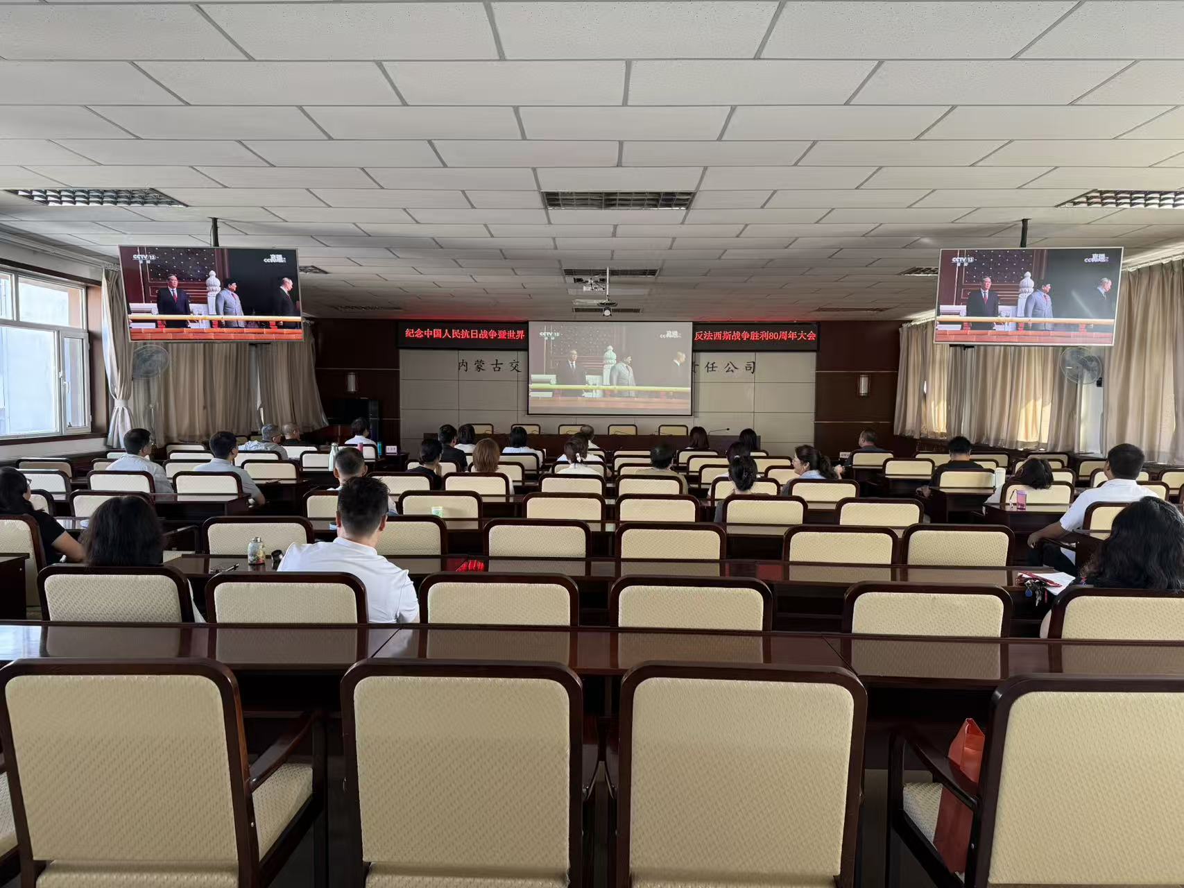 9月3日上午,紀念中國人民抗日戰爭暨世界反法西斯戰爭勝利80周年閱兵儀式在北京隆重舉行。內蒙古交通設計院組織黨員、團青、民主黨派、無黨派人士觀看這一歷史性盛況,認真聆聽習近平總書記的重要講話,觀看閱兵方陣颯爽英姿,共同見證這莊嚴神圣、激動人心的時刻。 此次閱兵儀式全方位展示了新時代我軍作戰力量的跨越式發展,當看到閱兵部隊戰士們邁著鏗鏘有力的步伐從天安門前走過,一輛輛裝甲戰車鋼鐵洪流般穿過,一架架戰機呼嘯而過,全體參會人員聚精會神地盯著屏幕,不愿錯過任何一個激動人心的場面。 閱兵儀式結束后,大家紛紛表示,此次閱兵不僅是一次震撼的視覺盛典,也是一次初心的重溫、使命的傳承,更是一堂生動的愛國主義教育課,強化了共同歷史記憶,激發了愛國熱情,增強了國家榮譽感和民族自豪感。 內蒙古交通設計院全體黨員干部職工將以此次閱兵為精神動力,深入傳承偉大抗戰精神,將觀看閱兵的感悟轉化為賦能交通事業發展的實際行動,進一步發揮交通設計專業優勢,凝聚技術共識、匯聚創新力量,為推進中國式現代化和中華民族偉大復興貢獻力量。